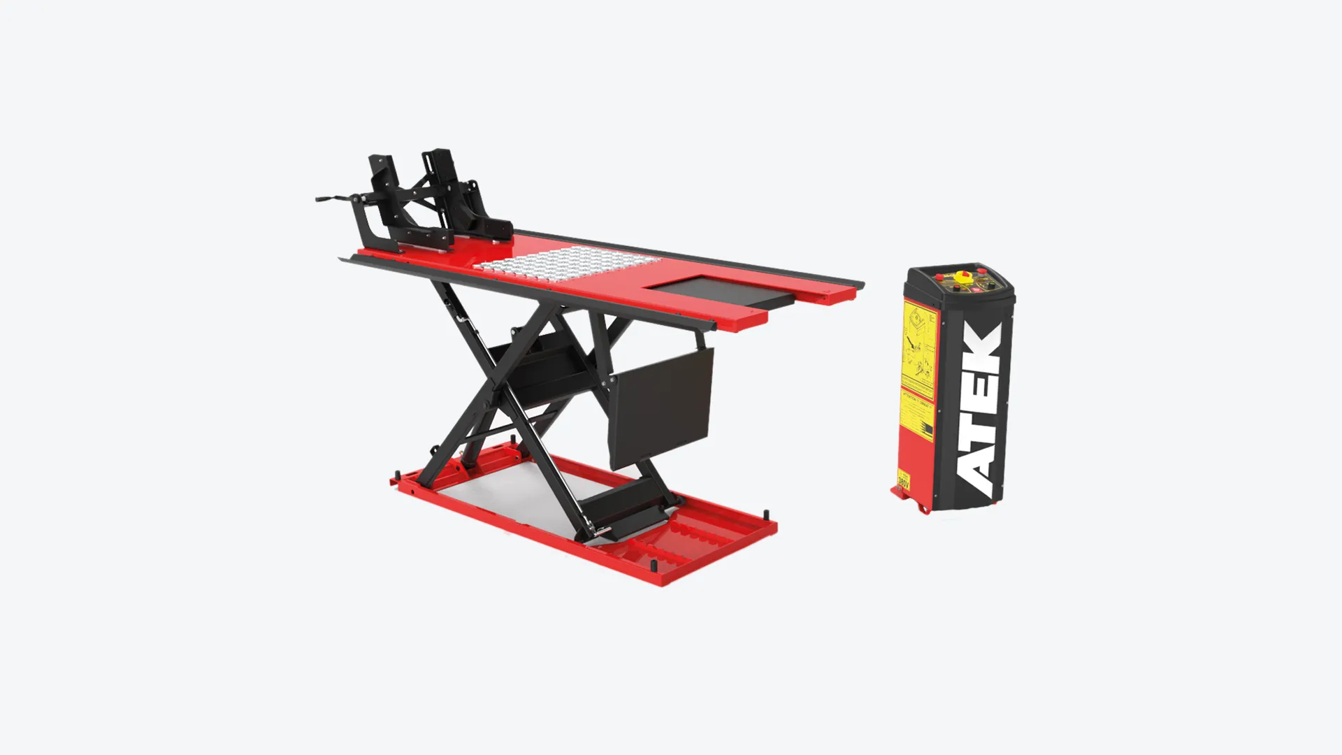Moto Lift, otomatik gizlenen rampa özelliği sayesinde platform yükseldiğinde rampayı içeri çekerek operatöre büyük bir kullanım kolaylığı sağlar. Bu yenilikçi sistem, motosikletin daha rahat konumlandırılmasına olanak tanırken, çalışmayı daha pratik ve konforlu hale getirir.